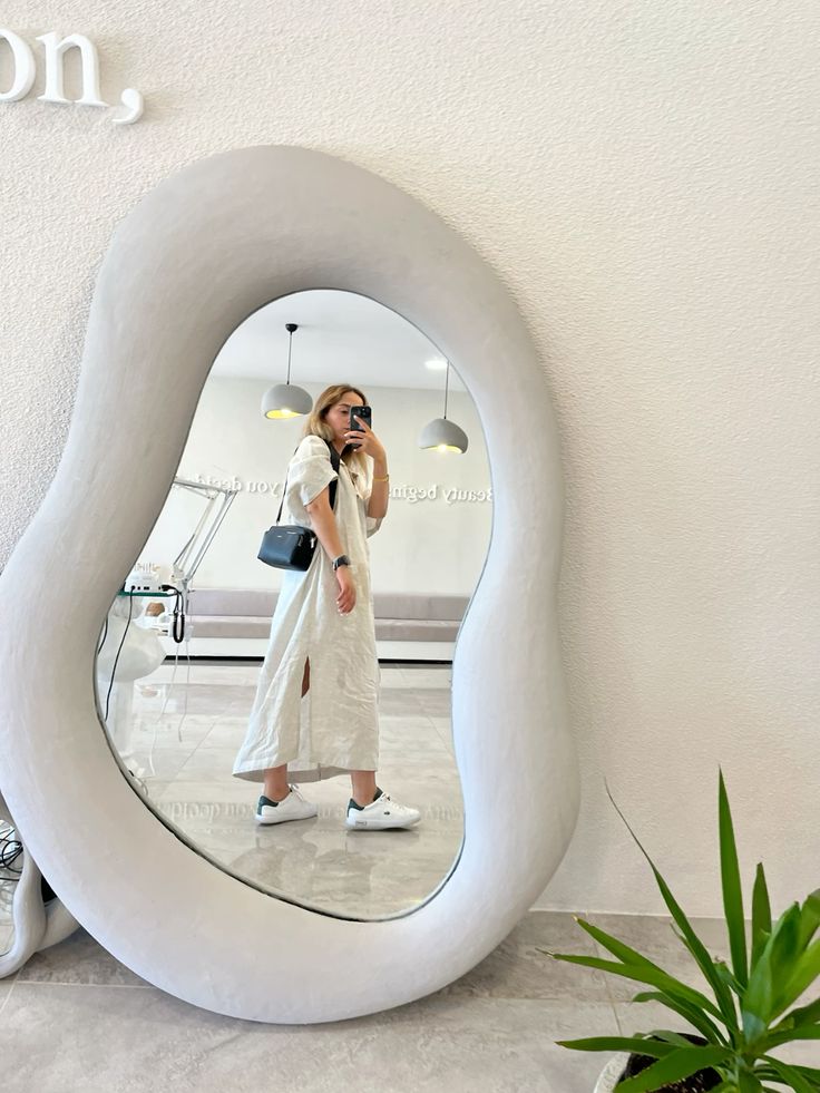 La glace Amanda séduit par son contour organique et fluide, incarnant une élégance contemporaine et naturelle. Ses lignes irrégulières évoquent les formes du vivant, apportant une touche artistique et apaisante à l’espace. Avec son design minimaliste, à la fois doux et sophistiqué, Amanda s’impose comme une pièce décorative unique qui capte le regard sans jamais en faire trop — parfaite pour sublimer un intérieur moderne et raffiné.