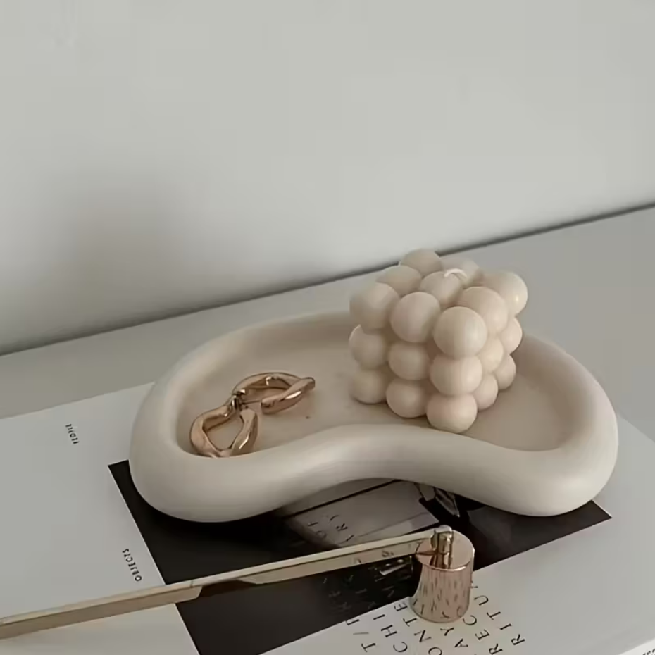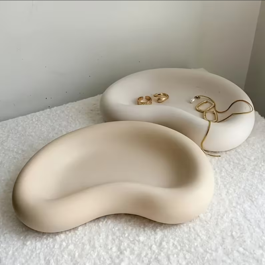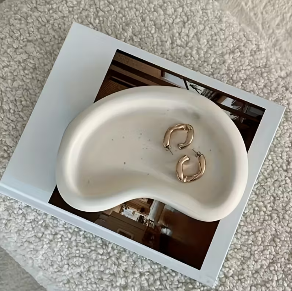 Ce mini plat incurvé est fabriqué à partir de résine polystyrène coulé à la main et doté d'un design minimaliste. Ces plats servent de base neutre pour exposer vos objets du quotidien tels que des bijoux, des soins de la peau, des parfums, des bougies et plus encore. Avec une finition en résine polystyrène naturel lisse, ils se démarquent magnifiquement et sont utiles dans toute la maison.